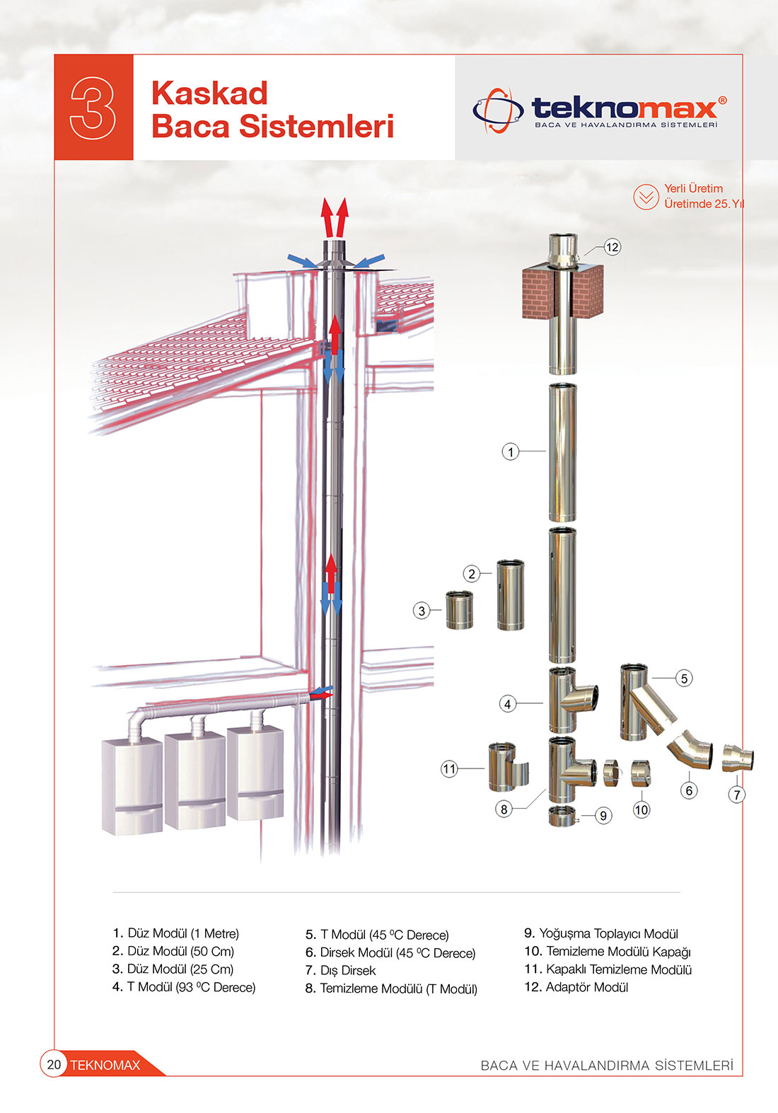 Sistem, modern ısıtma cihazlarının kullanıldığı düşük baca gazı sıcaklığına sahip ve yoğuşmalı sistemlerin tekli veya kaskad bağlantılı, hermetik kombi cihazlarının tekli veya çoklu bağlantılı pozitif basınçlı baca uygulamalarında kullanılır.